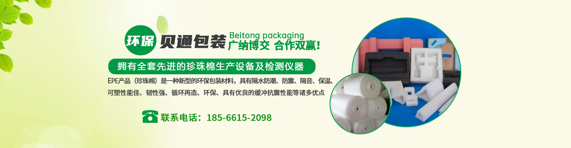 東莞市貝通包裝有限公司位于東莞市常平鎮(zhèn),交通便利。是一家集設(shè)計(jì)、生產(chǎn)、銷售、服務(wù)于一體的實(shí)體企業(yè),主要生產(chǎn)有:EPE珍珠棉,珍珠棉片材,貼合珍珠棉,珍珠棉異型材,成型珍珠棉等包裝產(chǎn)品。EPE產(chǎn)品(珍珠棉)是一種新型的環(huán)保包裝材料,具有隔水防潮、防震、隔音、保溫、可塑性能佳、韌性強(qiáng)、循環(huán)再造、環(huán)保、具有優(yōu)良的緩沖抗震性能等諸多優(yōu)點(diǎn),亦具有很好的抗化學(xué)性能。是傳統(tǒng)包裝材料的理想代替品。公司生產(chǎn)的產(chǎn)品符合ROHS要求,廣泛應(yīng)用于汽車、電子、玩具、五金、手袋、家具、電鍍、LED燈飾、玻璃制品、陶瓷、工藝品、醫(yī)療器材、凈水器、多媒體、家電、通訊設(shè)備等行業(yè)的各種形狀產(chǎn)品的包裝公司現(xiàn)有自己的設(shè)計(jì)團(tuán)隊(duì)、品質(zhì)部、銷售團(tuán)隊(duì)、運(yùn)輸團(tuán)隊(duì)、生產(chǎn)管理團(tuán)隊(duì),擁有全套先進(jìn)的珍珠棉生產(chǎn)設(shè)備及檢測儀器,配合科學(xué)的管理,為產(chǎn)品質(zhì)量提供強(qiáng)有力的保證,公司始終秉承“顧客至上,品質(zhì)優(yōu)良,信譽(yù)為本”的經(jīng)營宗旨!竭誠為廣大客戶朋友們服務(wù)!